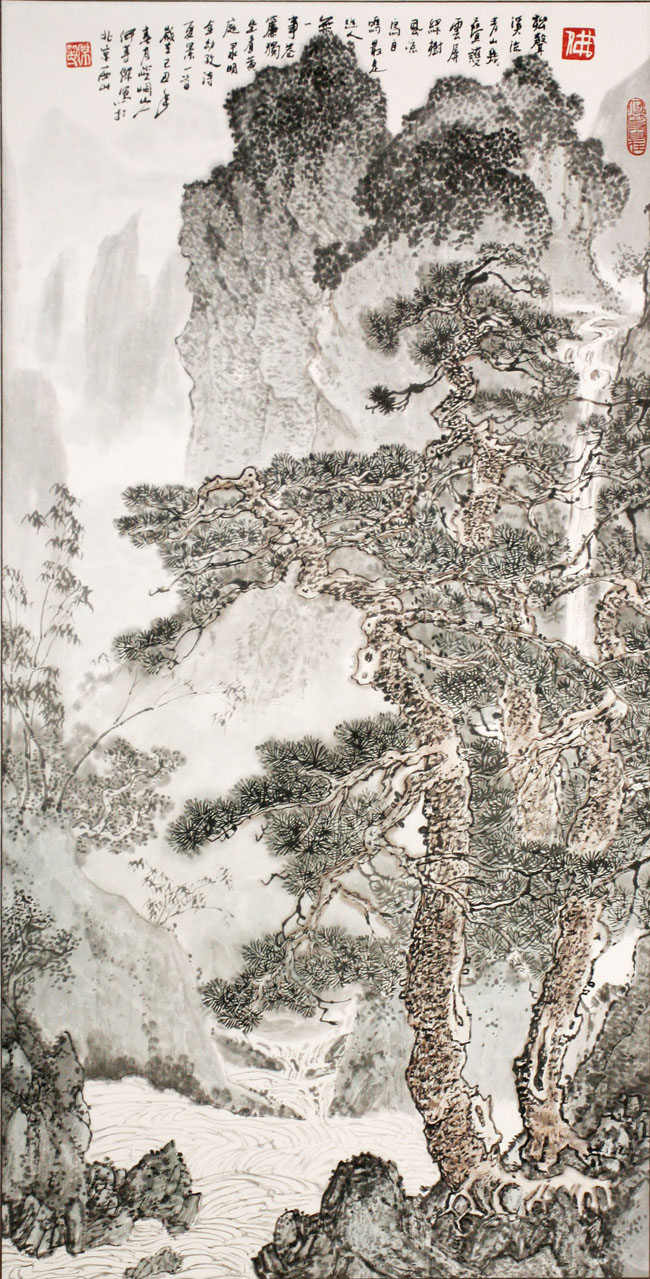竖幅山水松声溪流