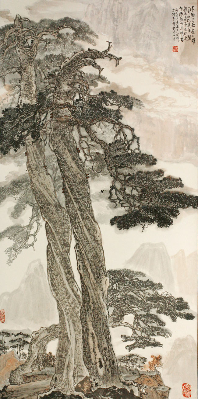 竖幅云松图