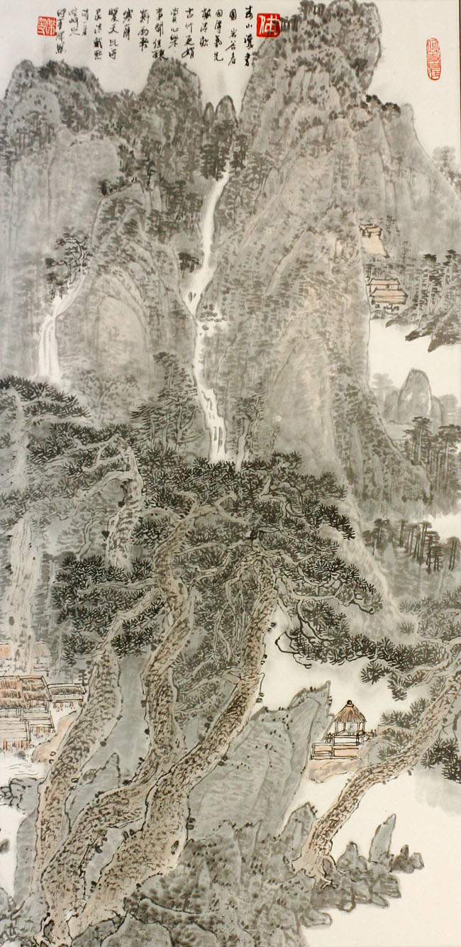 竖幅泰山读书图