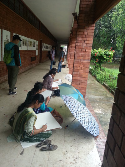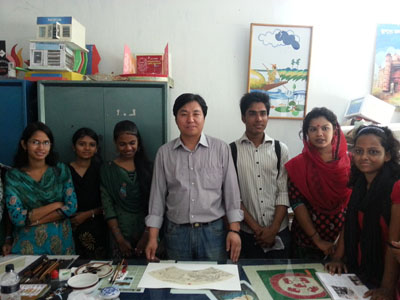 在孟加拉访问期间到达卡大学、拉杰沙西大学等学校参观艺术交流
