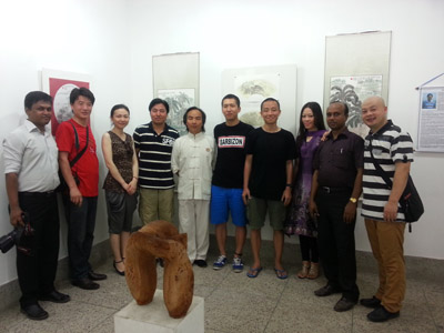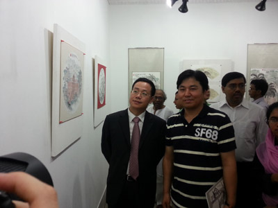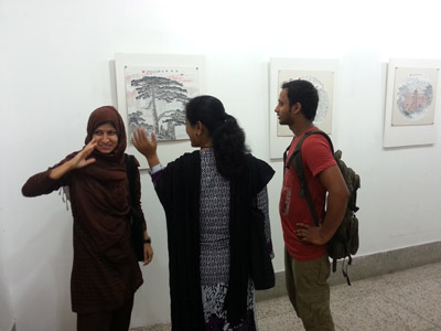 应孟中友谊中心的邀请,何等来、黄伟光、王卿、李亮4名中国画家于6月27日至7月12日访问孟加拉,访问取得丰硕成果。该活动是“美丽中国,美丽孟加拉”中孟青年画家交流项目的一部分。 嘉宾出席画展开幕式 7月8日,中国画家在孟创作作品联展在孟加拉国拉杰沙希市巴兰德拉美术馆开幕。中国驻孟加拉大使馆临时代办屈光洲、孟中友谊中心主席阿拉姆、拉杰沙希大学艺术学院院长阿布杜尔、孟知名作家哈森等近百人参加开幕式。
