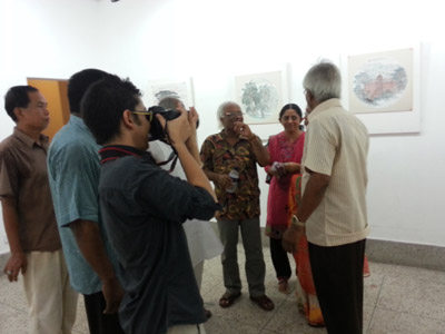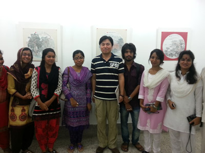 在孟加拉期间,中国画家团走访了孟首都达卡地区的名胜古迹及国家博物馆、达卡大学等高校,与2012年赴华采风的孟青年画家进行了座谈交流。访孟画家团还专门赴自然风景优美、人文氛围浓厚的拉杰沙希地区采风创作,走访了拉杰沙希大学艺术学院,与当地文化艺术界专家学者进行交流,并走进当地学校课堂现场指导孟中小学生作画,受到当地民众的欢迎。