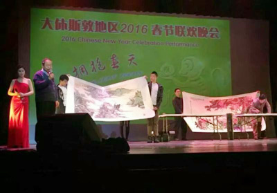2016年2月6日春节期间参加美国休斯敦拥抱春天晚会现场作画