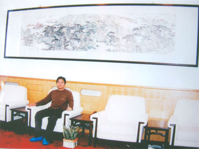 为会客厅创作巨幅山水画