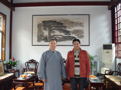 在南京栖霞古寺会客厅与住持隆相法师合影